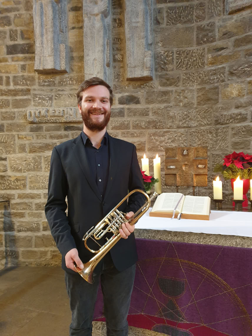 2018 bin ich zum Studium nach Würzburg gekommen. Hier spiele ich Studierendenposaunenchor und im Uniorchester, aber bereits in meiner ersten Woche in Würzburg habe ich im Posaunenchor der Auferstehungskirche ein musikalisches, aber auch menschliches Zuhause gefunden. Nachdem ich sechs Jahre hier mitgespielt habe, freue ich mich jetzt darauf als Chorleiter mit diesem wunderbaren Posaunenchor zusammen zu arbeiten.